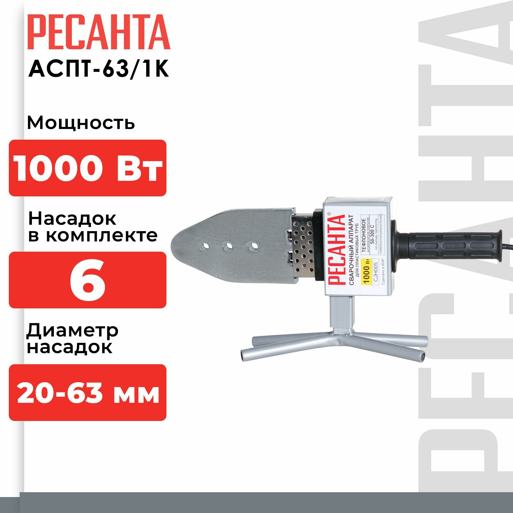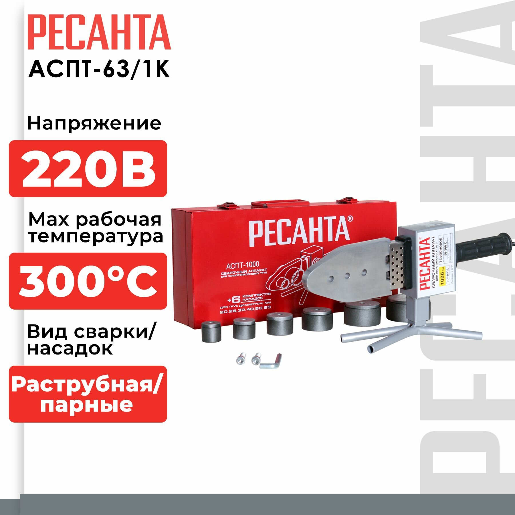 Аппарат для сварки ПВХ труб Ресанта АСПТ-63/1К РЕСАНТА АСПТ-63/1К | цена за 1 шт
