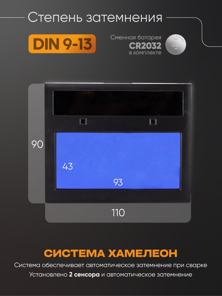 Автоматический светофильтр для сварочной маски хамелеон CET Ф7, 4 / 9-13 DIN информация: