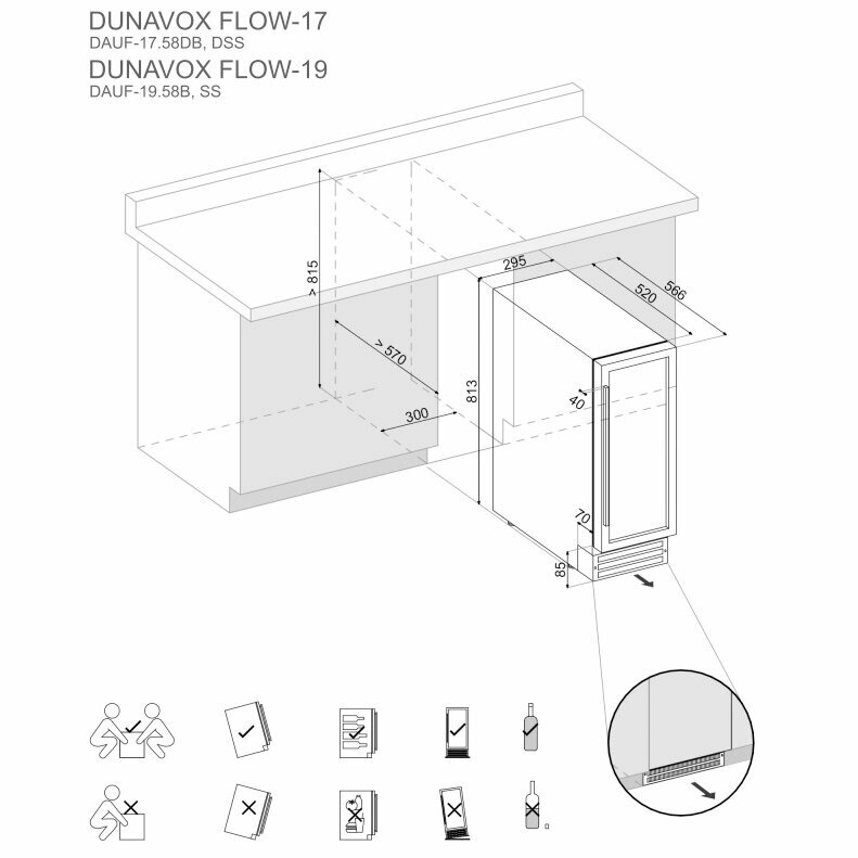 Винный шкаф Dunavox DAUF-19.58SS компрессорный встраиваемый под столешницу на 19 бут информация: