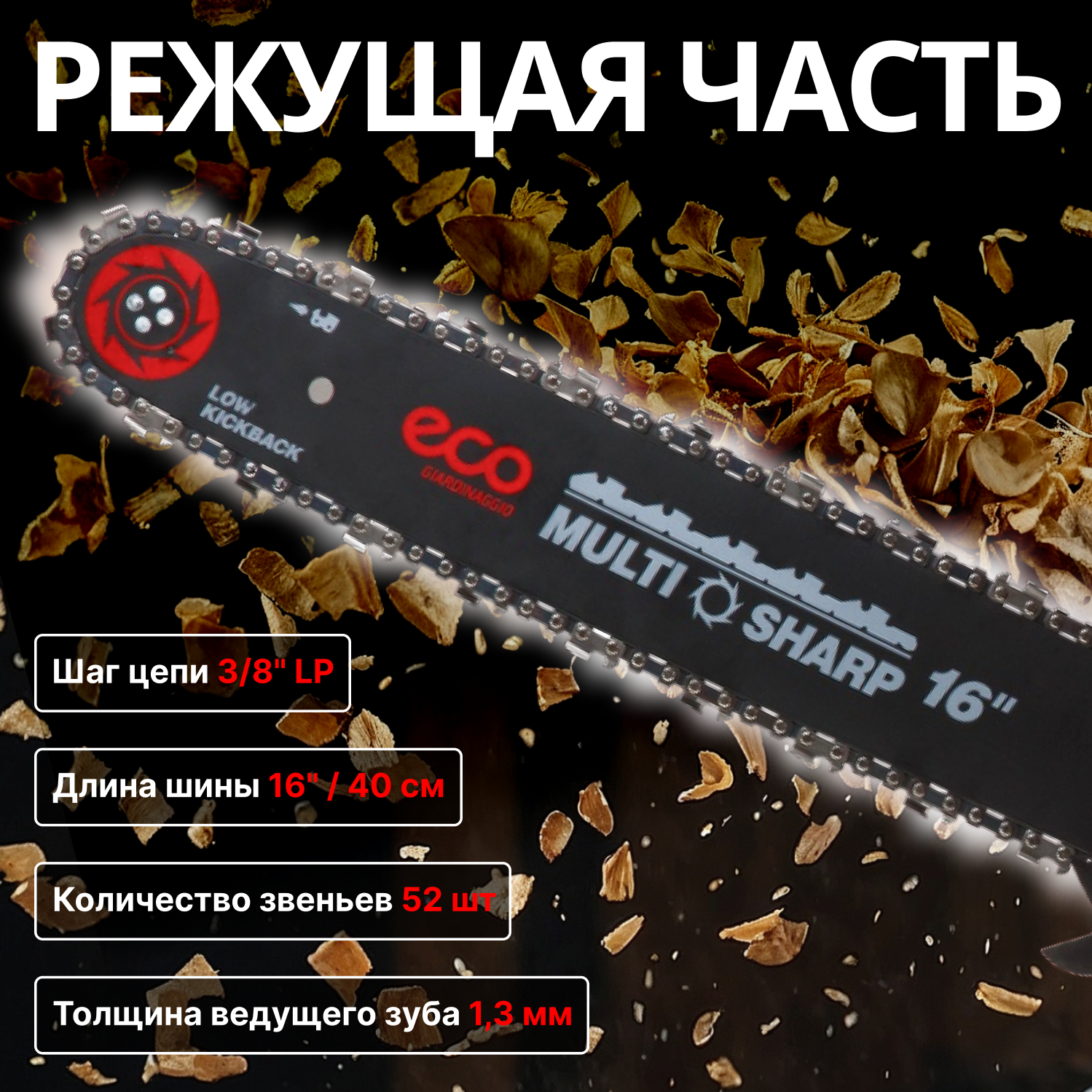 Бензопила ECO CSP-165 шина 40см (16"), 3/8" LP, 1.3мм, 57 зв.