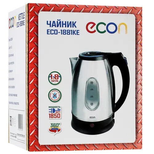 Отзывы на Чайник электрический ECON ECO-1881KE 1.8л из нержавеющей стали, с окошком и шкалой уровня воды
