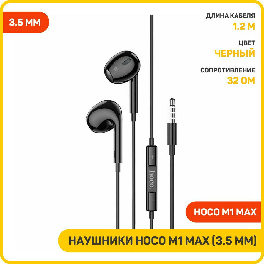 Наушники внутриканальные HOCO M1, Max, Jack 3.5мм, 1.2 м, цвет: чёрный 359 ₽