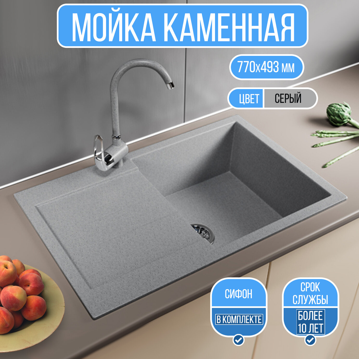 10 цен на мойка для кухни из искусственного камня прямоугольная с крылом (77x49,3), серая