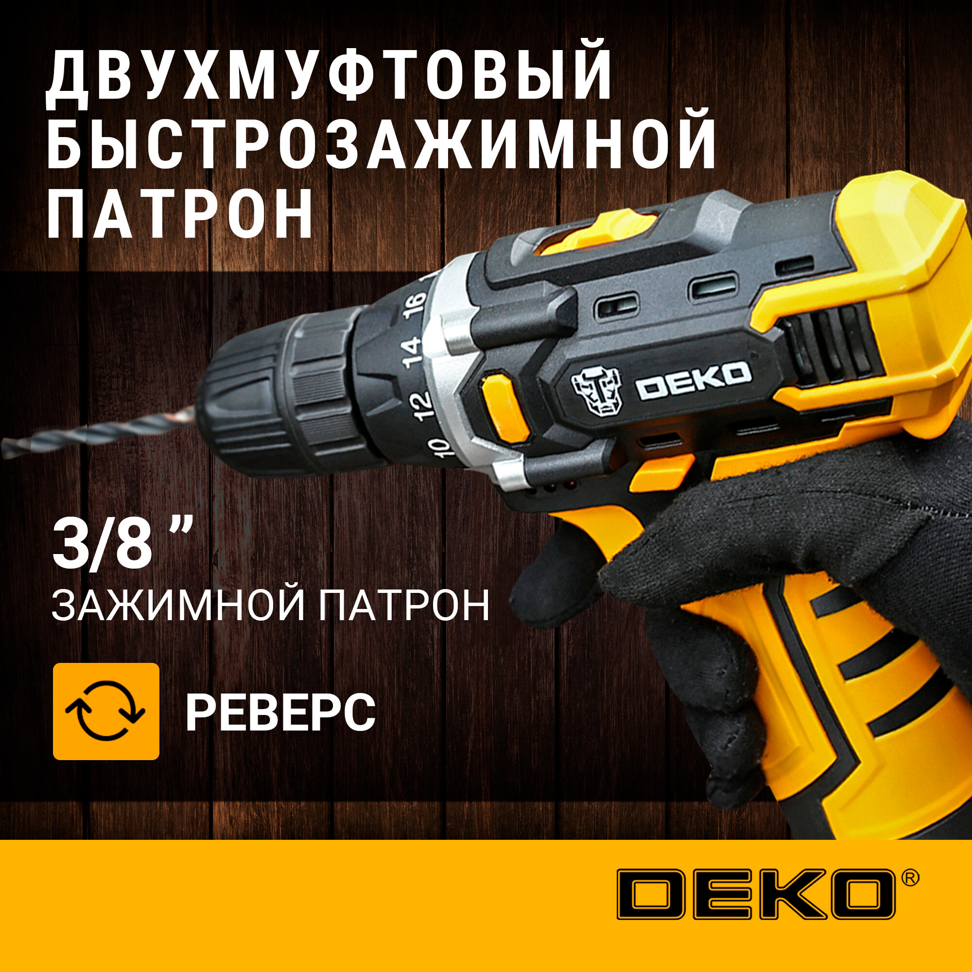 Аккумуляторная дрель-шуруповерт DEKO GCD12DU3 съёмный патрон Li-Ion 1.5 А·ч 12 В х1 коробка