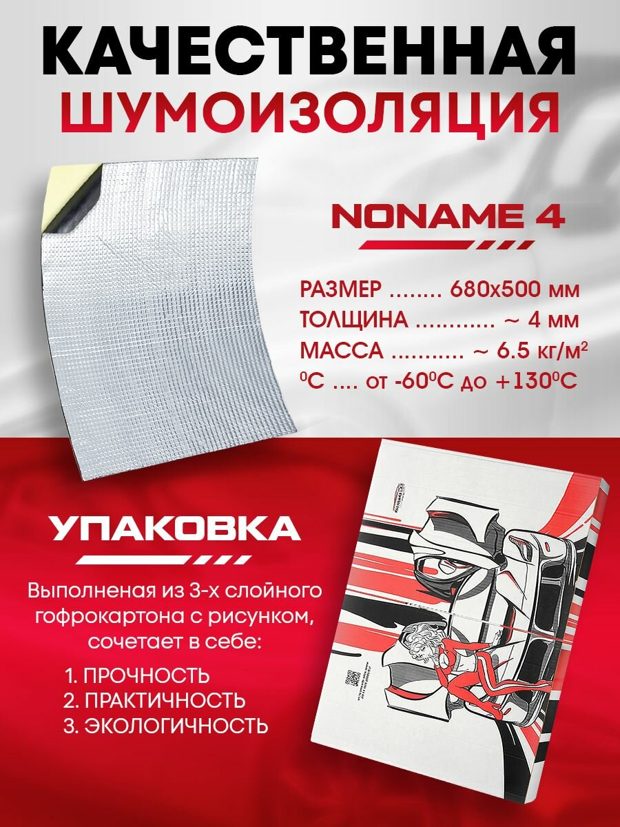Виброизоляция для авто Noname 4 мм, 680*500 - 10 листов / Вибропласт 4мм информация: