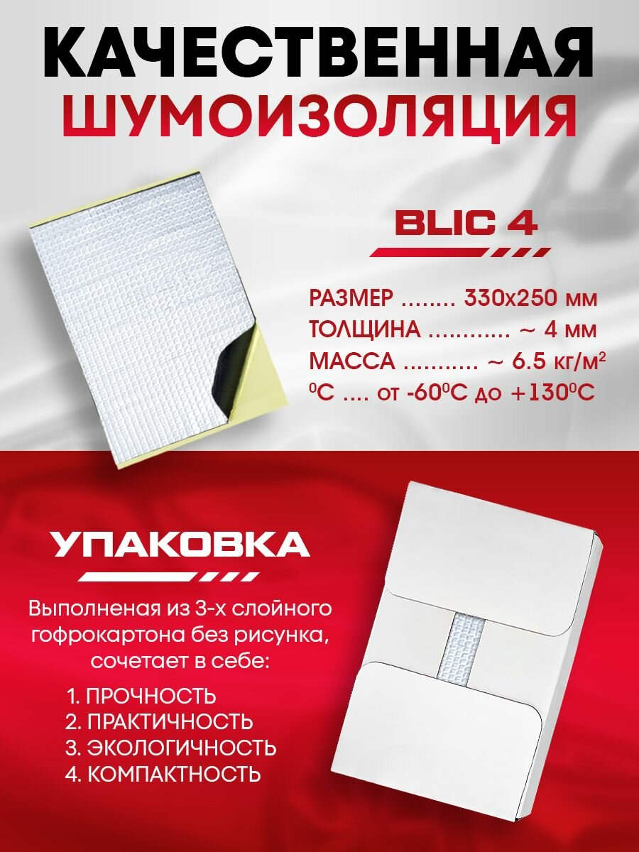 Шумоизоляция для автомобиля DreamCar Blic 3мм 33х25см - 10 листов / Виброизоляция для авто самоклеящаяся 1 100 ₽