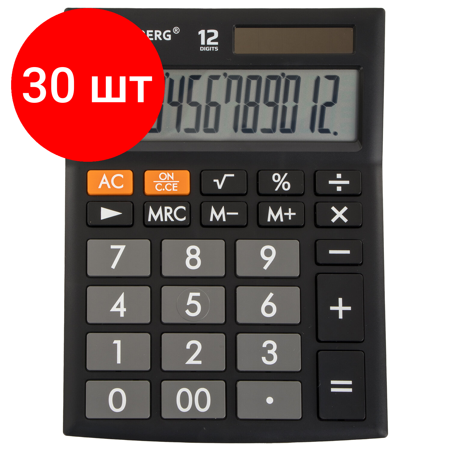 10 цен на Комплект 30 шт, Калькулятор настольный BRAUBERG ULTRA-12-BK (192x143 мм), 12 разрядов, двойное питание, черный, 250491