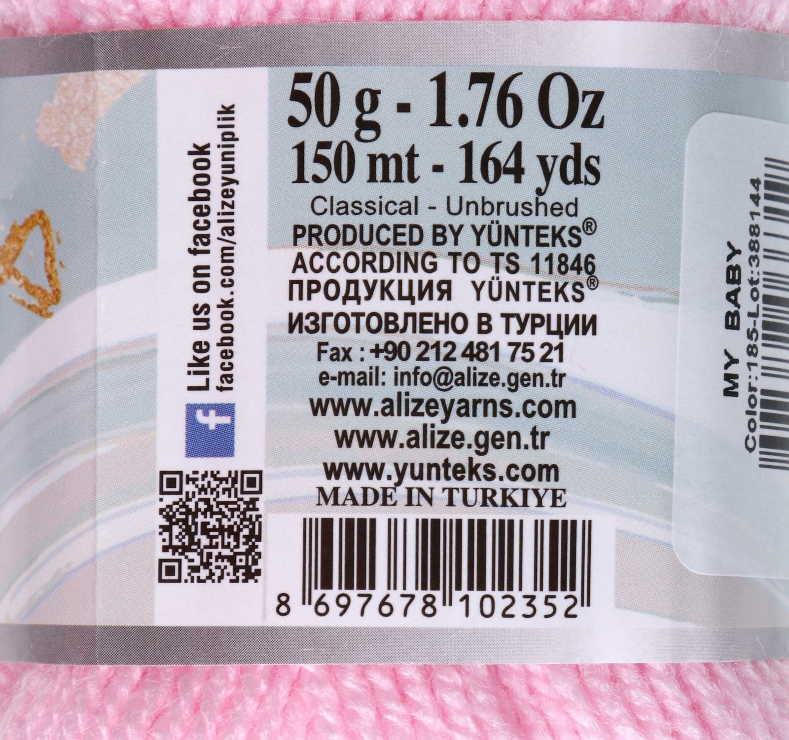 Alize пряжа "My Baby" 50г 150м 185-розовый (1 моток) информация: