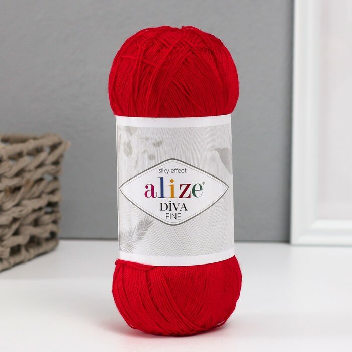 Пряжа DIVA FINE ALIZE, красный - 106, 100% микрофибра акрил, 5 мотков, 100 г., 600 м. информация: