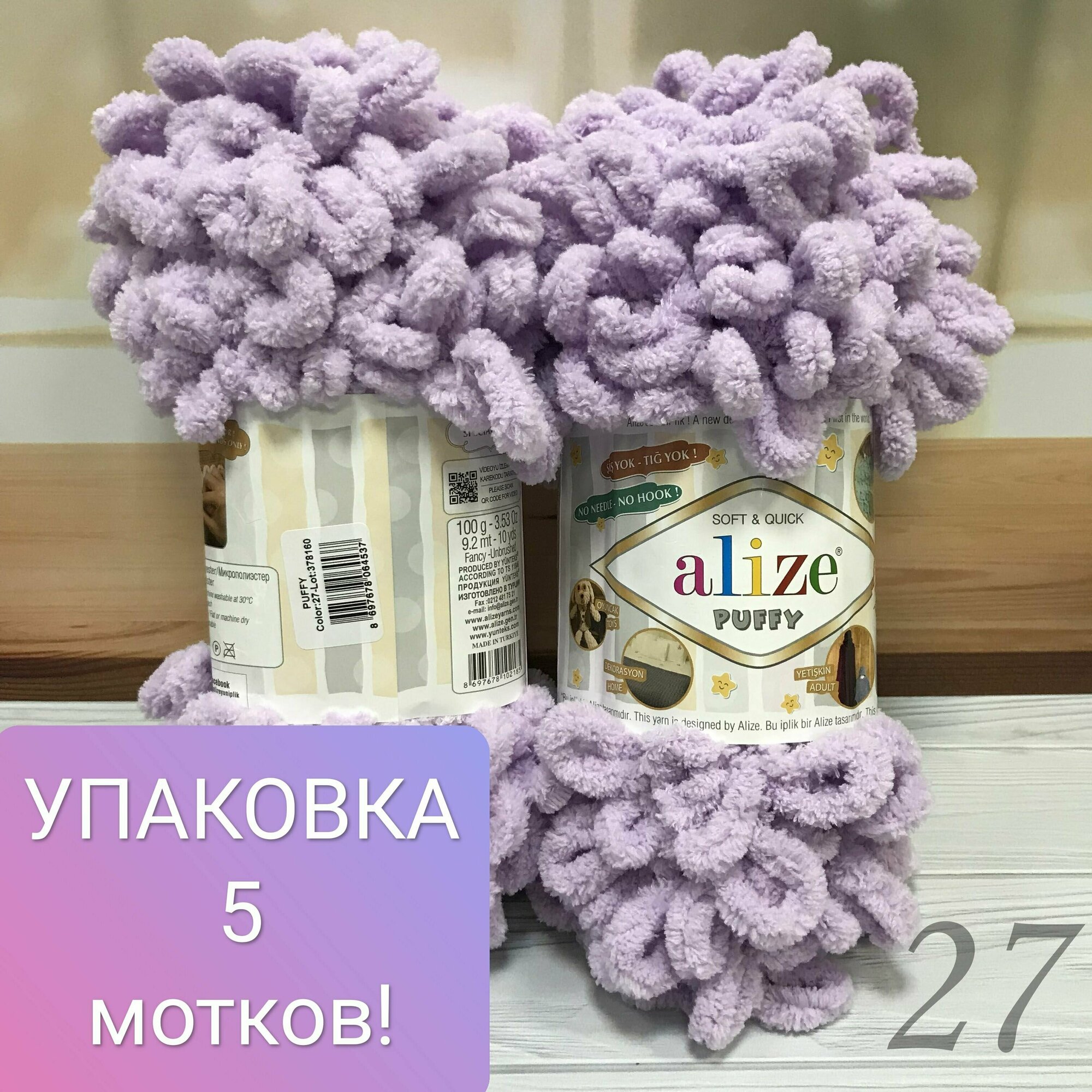 10 цен на Пряжа ALIZE "Puffy", 100 г 9 м, 100% микрополиэстер, 27 светлая сирень, 5 шт