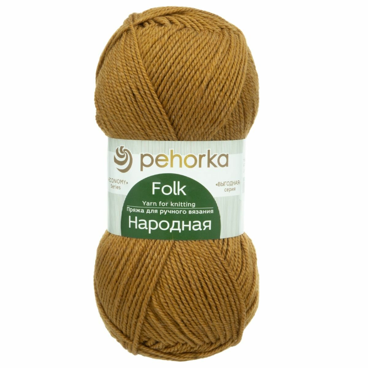Пряжа для вязания Пехорка 'Народная', 100г, 220м (30% шерсть, 70% акрил высокообъемный) (447-Горчица), 5 мотков