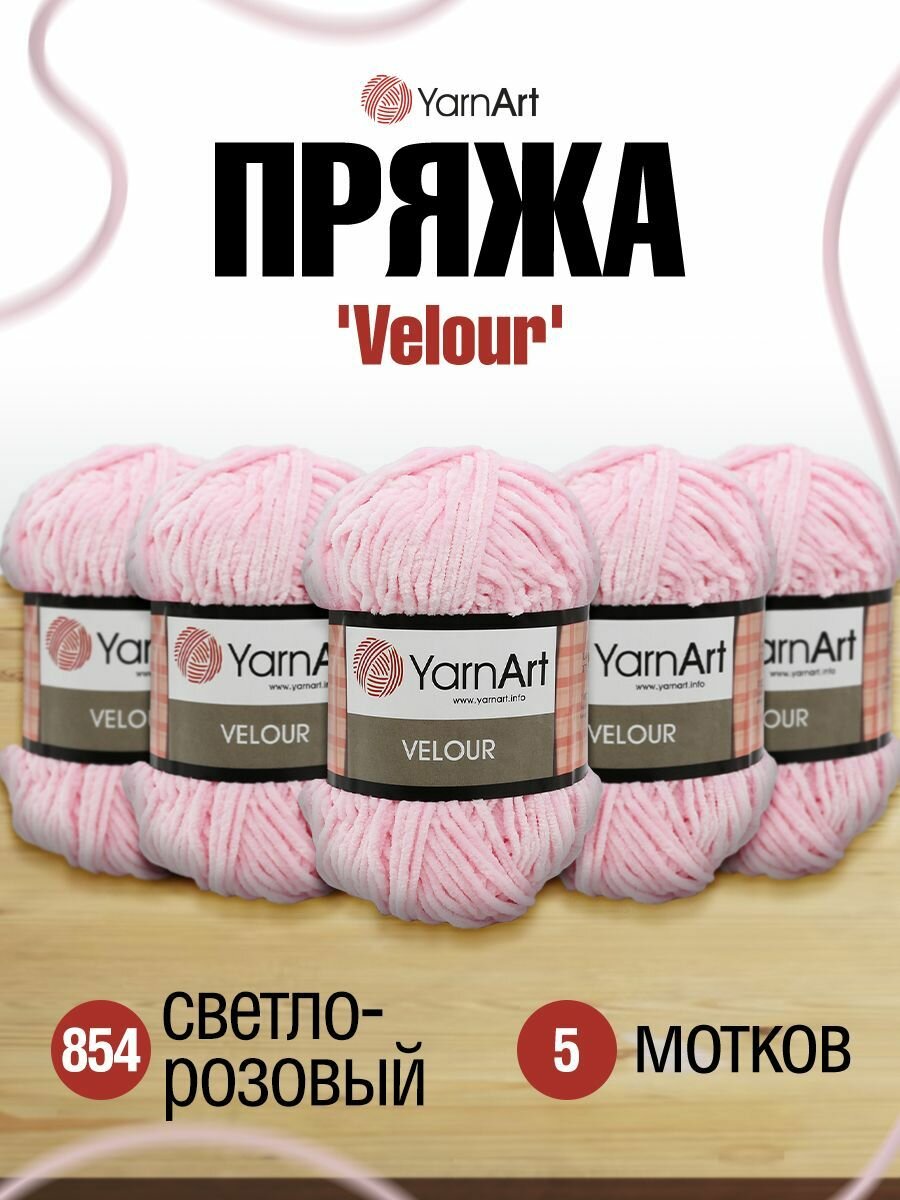 Пряжа для вязания YarnArt 'Velour', 100г, 170м (100% микрополиэстер) (854 светло-розовый), 5 мотков информация: