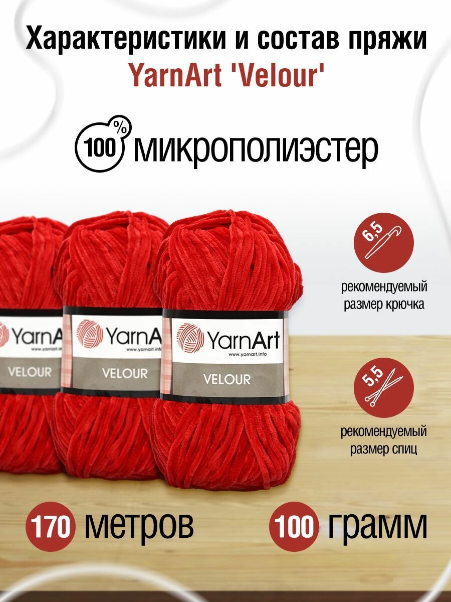 Пряжа для вязания YarnArt 'Velour', 100г, 170м (100% микрополиэстер) (846 красный), 5 мотков информация: