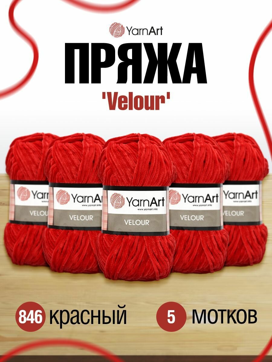 10 цен на Пряжа для вязания YarnArt 'Velour', 100г, 170м (100% микрополиэстер) (846 красный), 5 мотков