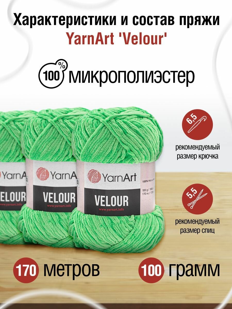 Пряжа для вязания YarnArt 'Velour', 100г, 170м (100% микрополиэстер) (861 светло-зеленый), 5 мотков информация: