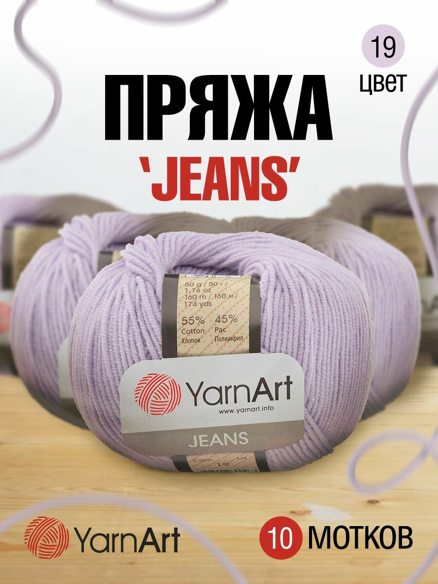 Пряжа для вязания YarnArt 'Jeans', 50г, 160м (55% хлопок, 45% полиакрил) (19 светло-сиреневый), 10 мотков информация: