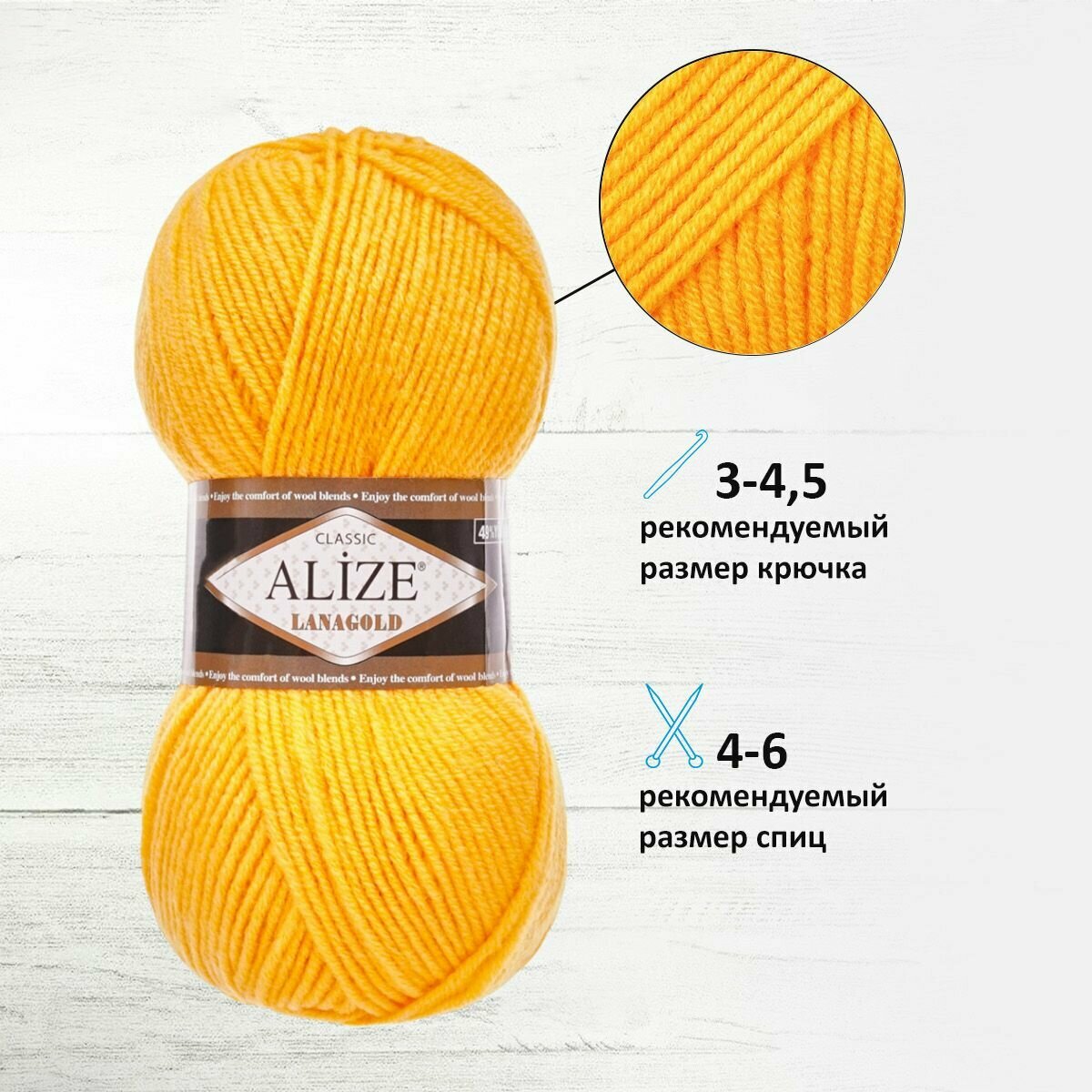 Пряжа Ализе Ланаголд 216 желтый 5 мотков/100г/240м информация: