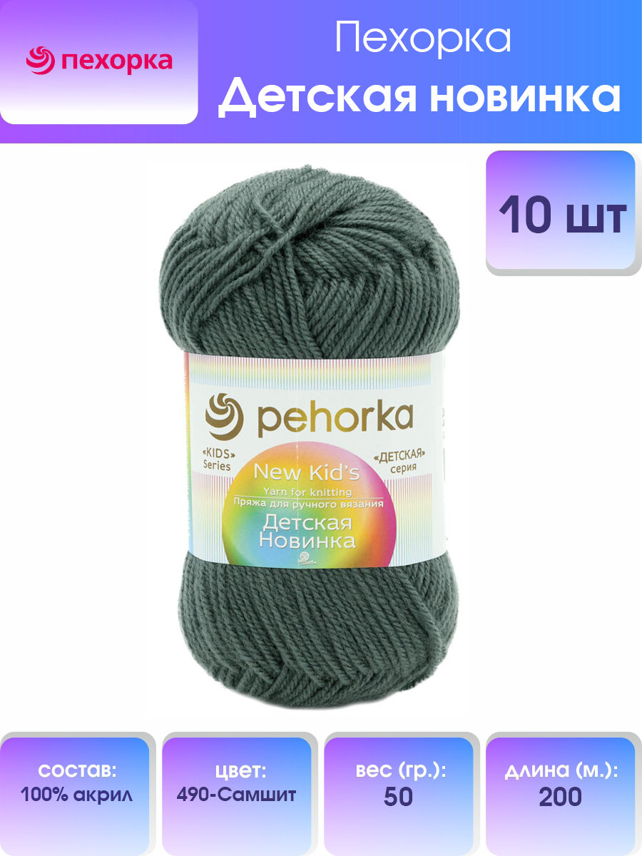 Пряжа для вязания Пехорка 'Детская новинка' 50 гр. 200 м. (100%акрил) (490 самшит), 10 мотков информация: