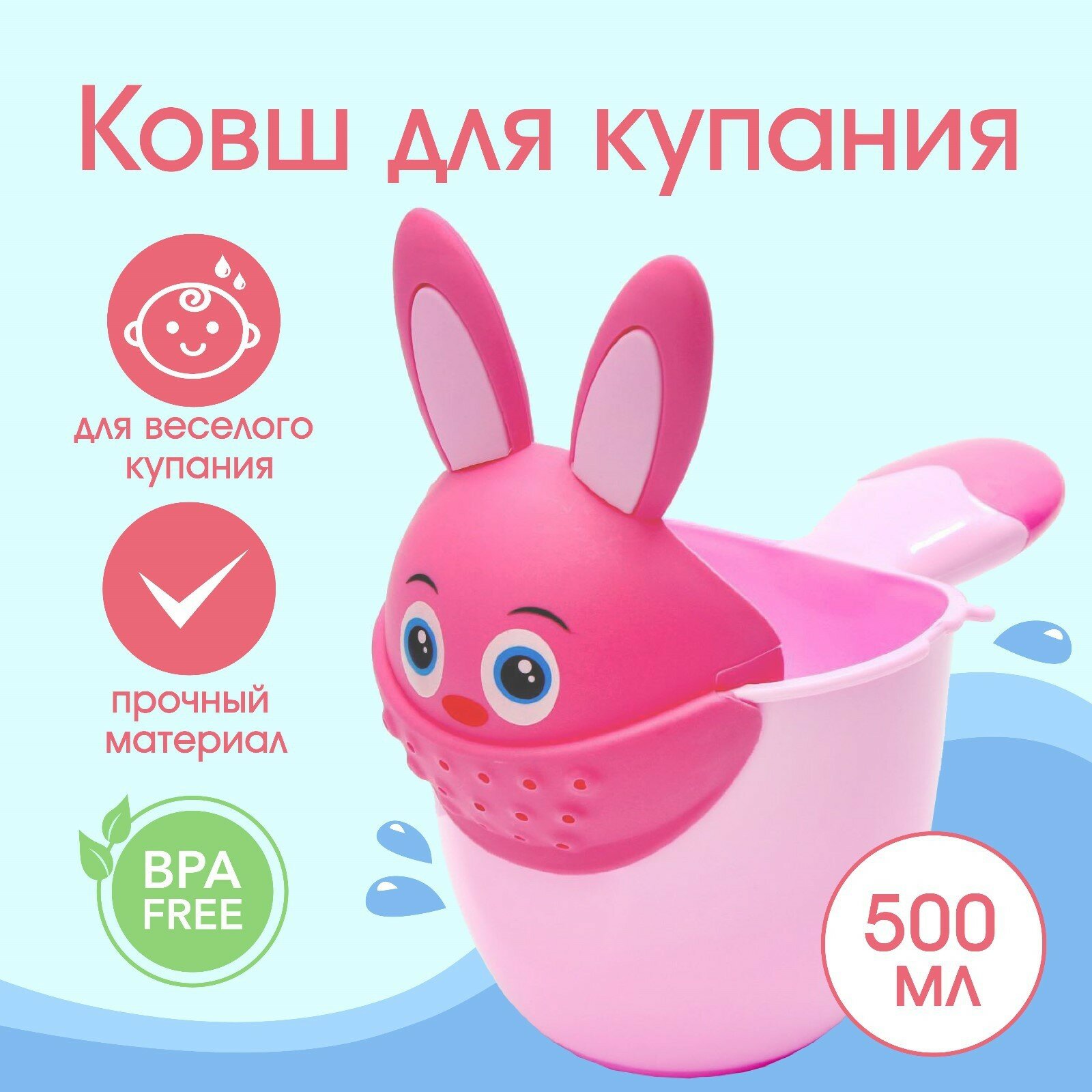 10 цен на Ковш пластиковый для купания и мытья головы, детский банный ковшик "Зайка" 500 мл., с леечкой, цвет розовый, ЛАС играс