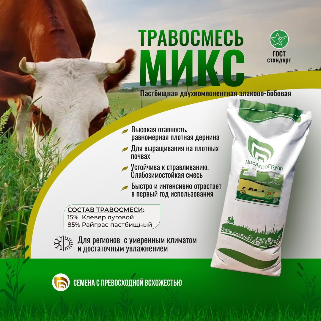 Травосмесь Микс кормовая пастбищная от Мосагрогрупп 20 кг информация: