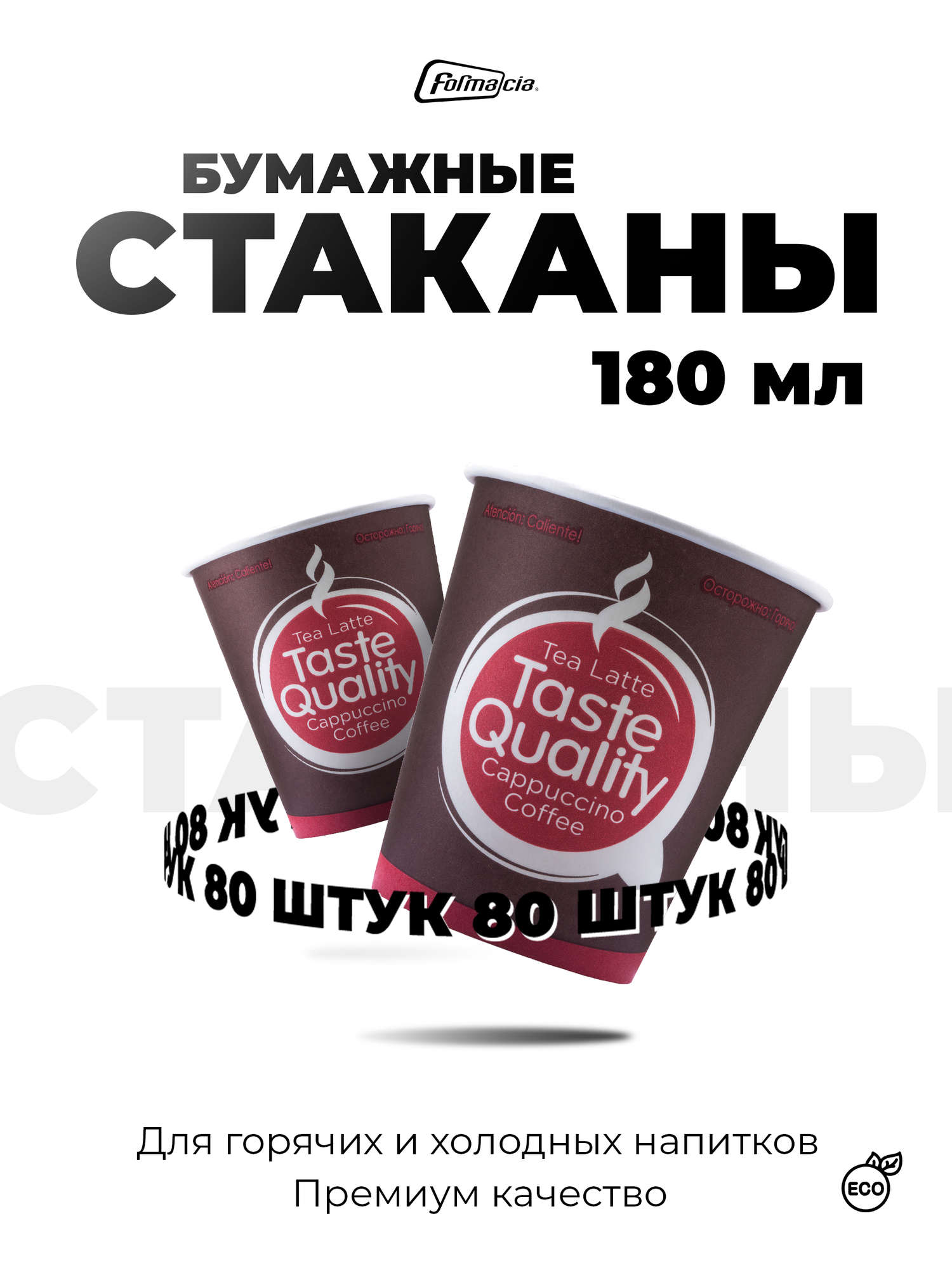 Одноразовые стаканы 180 мл, комплект 80 шт., бумажные однослойные, "Taste Quality", холодное/горячее, формация, HB72-205-0001, 606197 648 ₽
