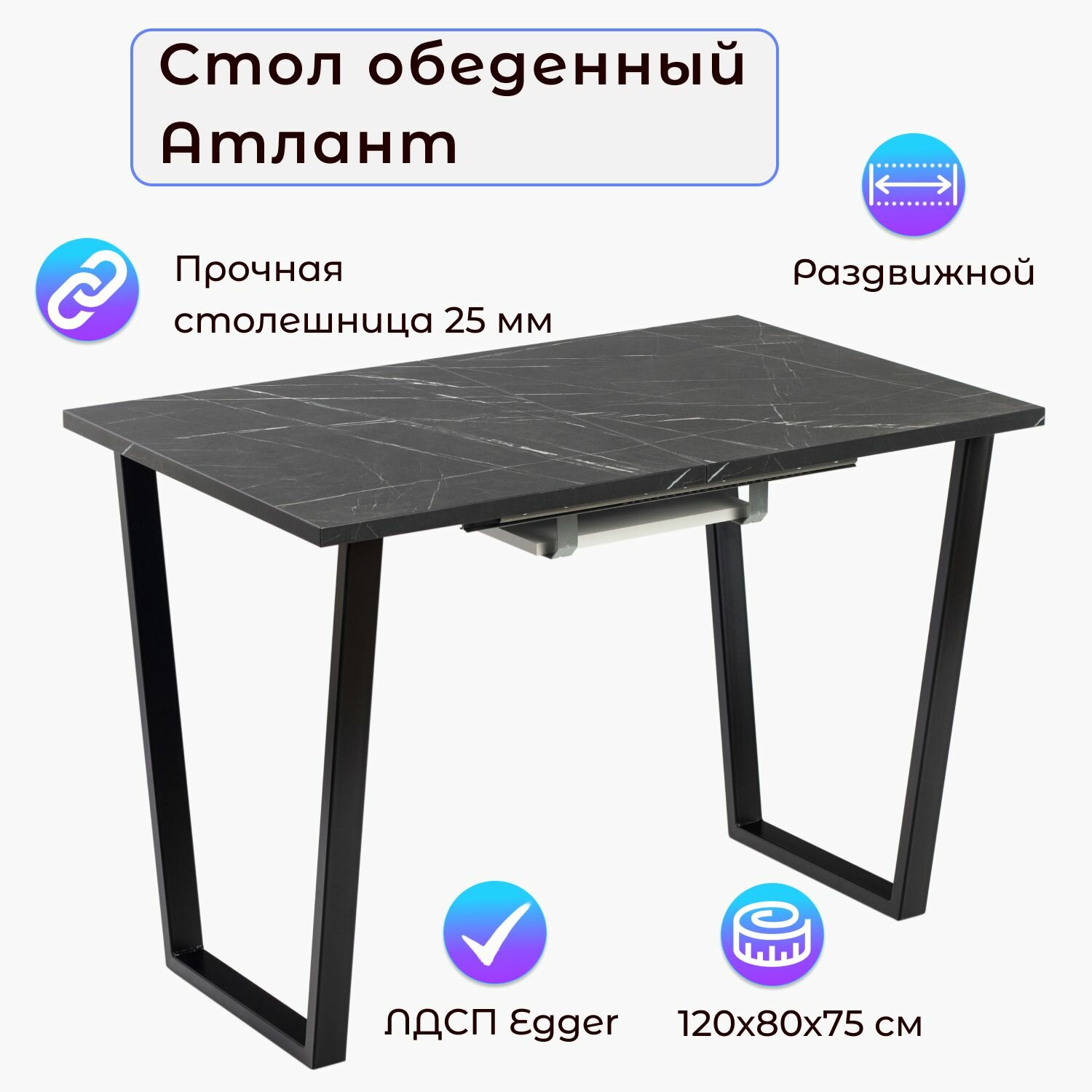 Стол кухонный обеденный атлант 02 EGGER: Камень черный раздвижной в стиле лофт информация: