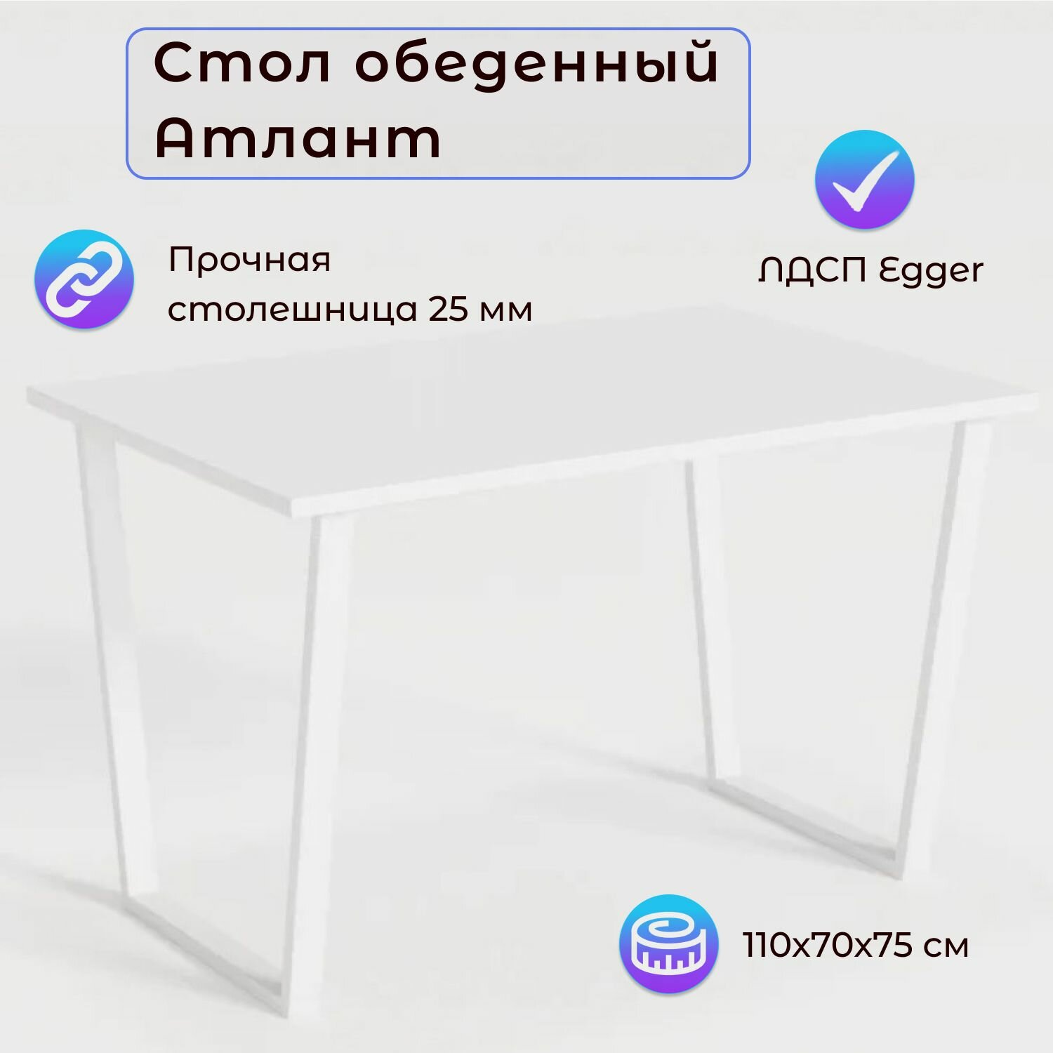 Стол кухонный обеденный атлант 04 EGGER: Белый нераскладной в стиле лофт информация: