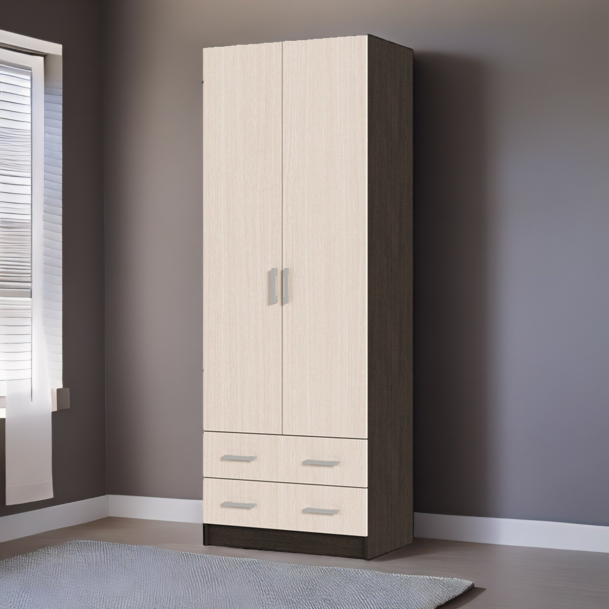 Шкаф распашной 2-х створчатый Вегас для одежды, шимо темный/кофе с молоком 14 390 ₽