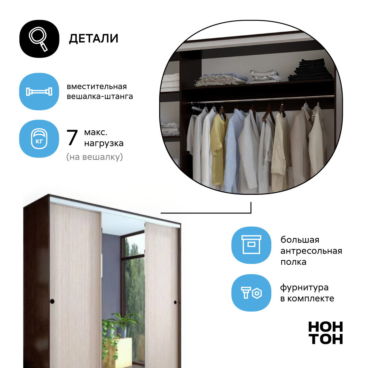 Шкаф-купе для одежды Нонтон Альянс, дуб беленый / венге 200 см информация: