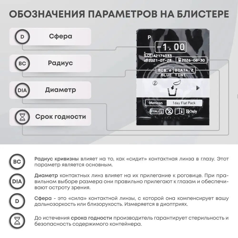 Контактные линзы MIRU 1 Day Menicon Flat Pack, Кривизна 8.6 Однодневные, -6 / 14.2 / 8.6, 30 шт.