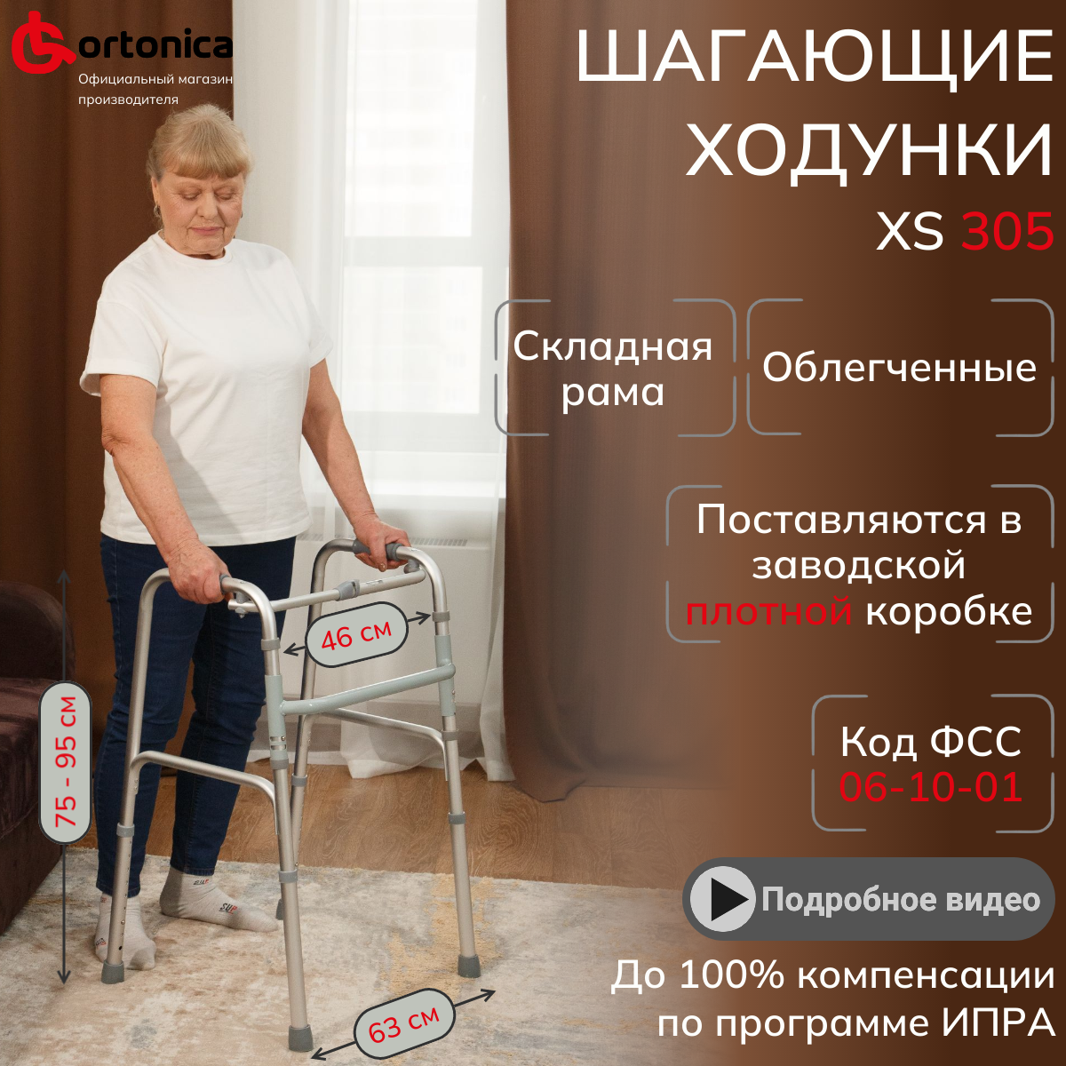 Ходунки медицинские Ortonica XS 305 шагающие складные легкие для пожилых и инвалидов реабилитации после травм или инсульта код ФСС 06-10-01