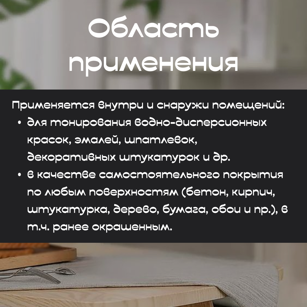 | Назначение | для водоэмульсионных и дисперсных красок |