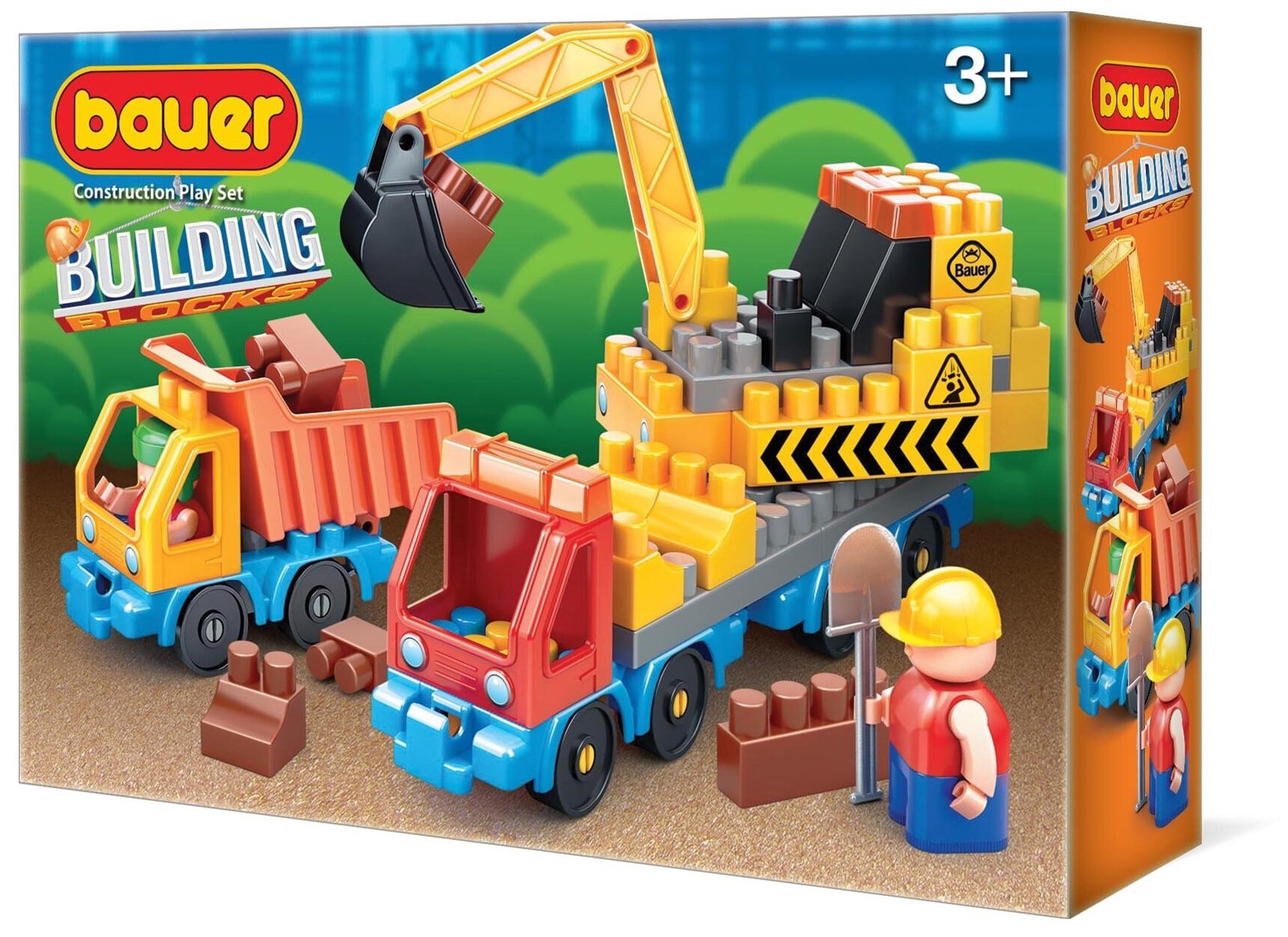 Детская развивающая игрушка конструктор Bauer "Стройка" экскаватор и грузовик 3+ информация: