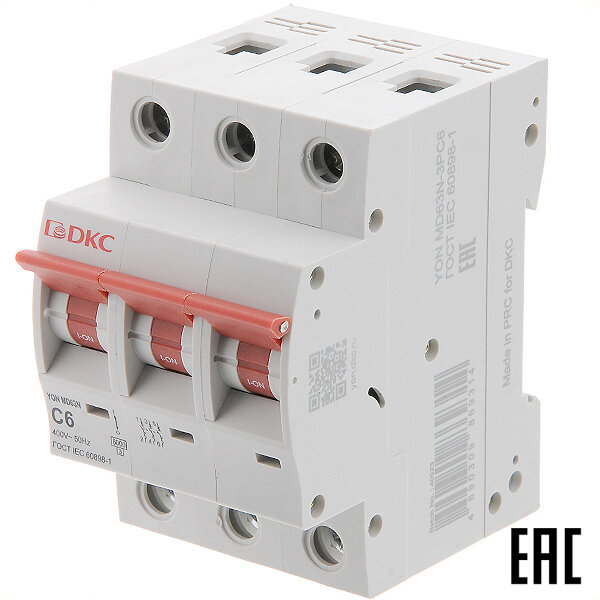 Автоматический выключатель на Din-рейку ДКС MD63-3C20-6 20А/3п/ 6кА 2 088 ₽