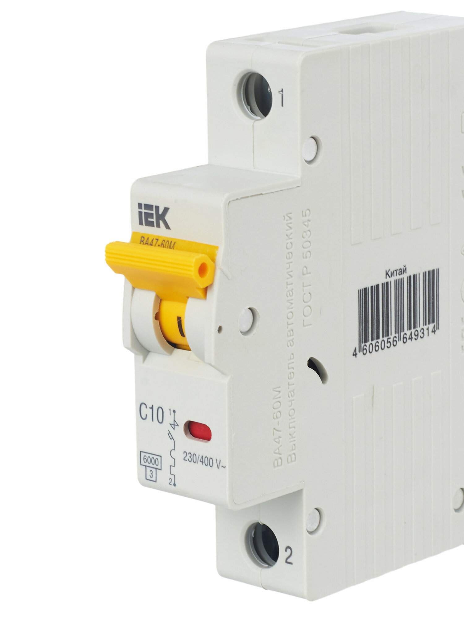 Выключатель автоматический модульный 1п C 10А 6кА ВА47-60M, IEK MVA31-1-010-C (1 шт.)