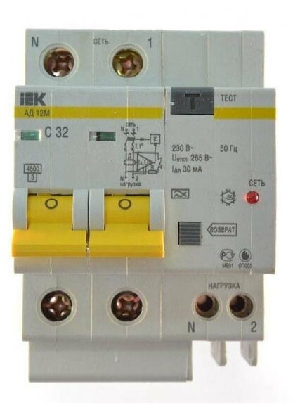 Дифавтомат АД-12М 2п, C, 32А, 30мА IEK MAD12-2-032-C-030 информация: