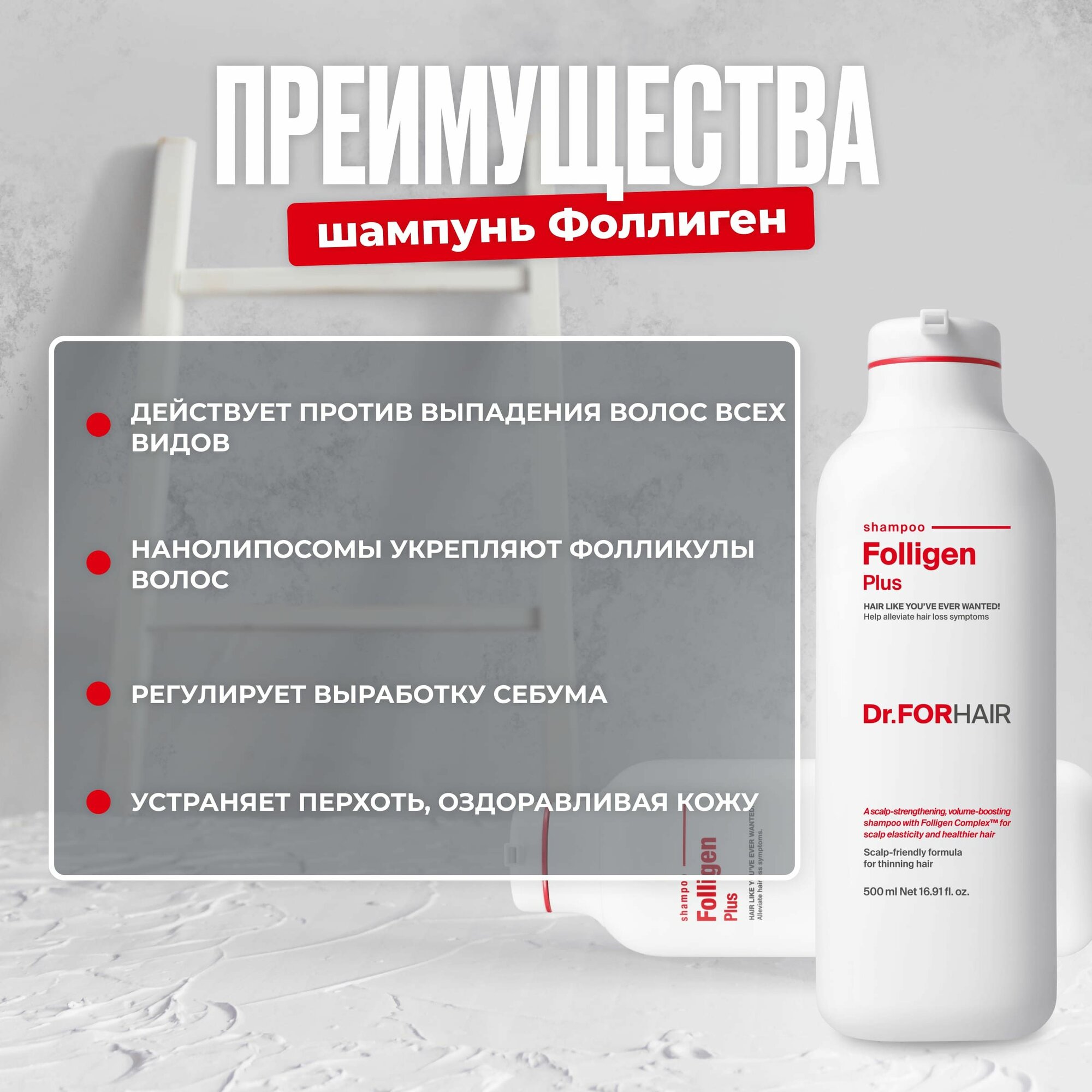 10 цен на Шампунь-крем для укрепления и стимуляции роста волос против жирности и перхоти Folligen Plus Dr. For Hair, 500 мл