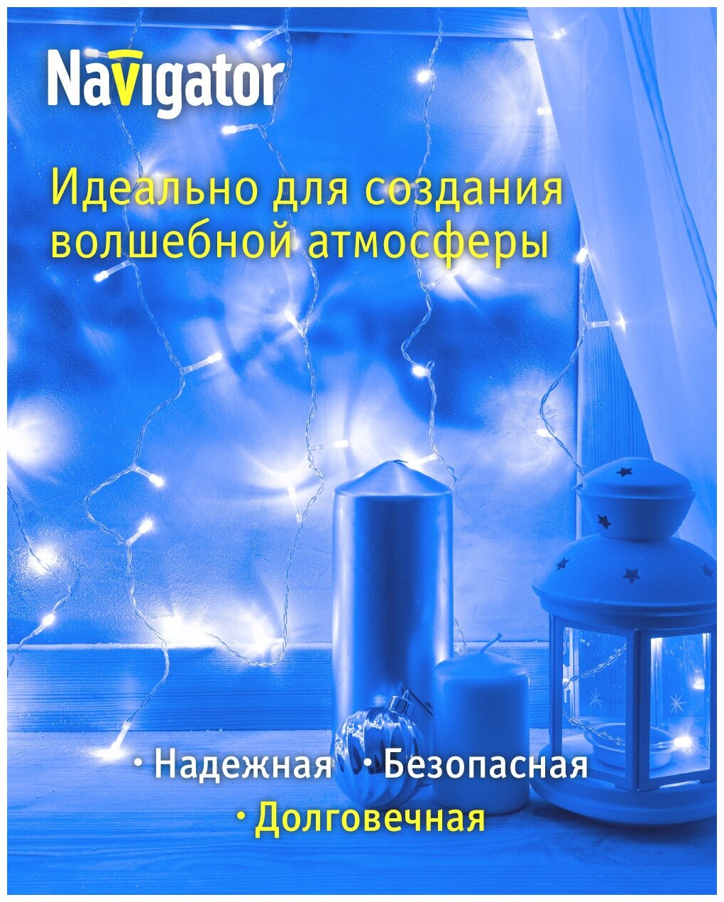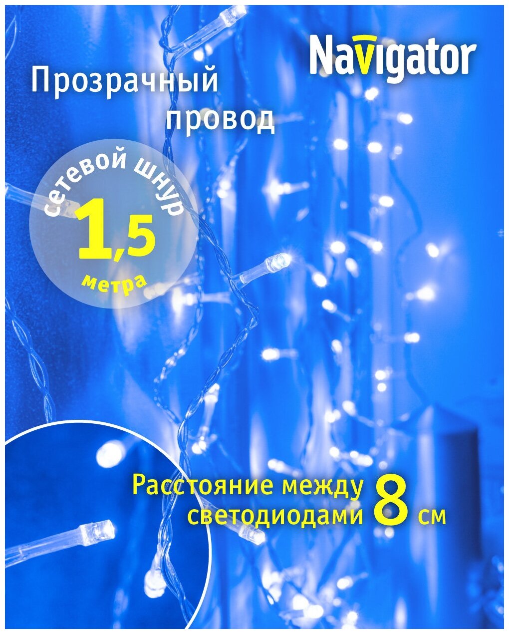 10 цен на Гирлянда световой занавес Navigator 61 866, 2 х 1.5 м, синий свет, прозрачный провод, IP20