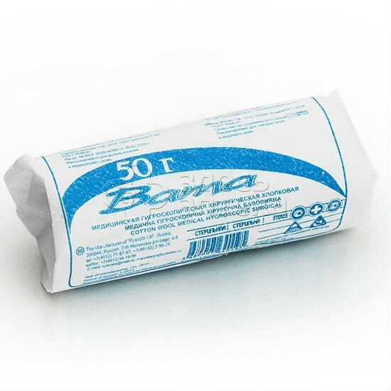Емельянъ Савостинъ Вата медицинская нестерильная "Емельянъ Савостин", хирургическая, фасованная по 50г./В упаковке шт: 3