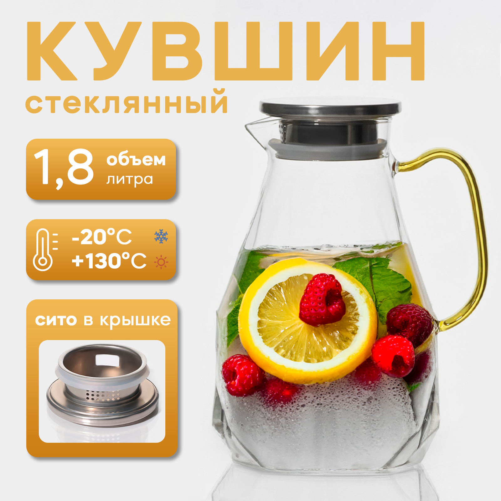 Кувшин для воды стеклянный, чайник с крышкой Magistro "Стиль", 1,6 л 948 ₽
