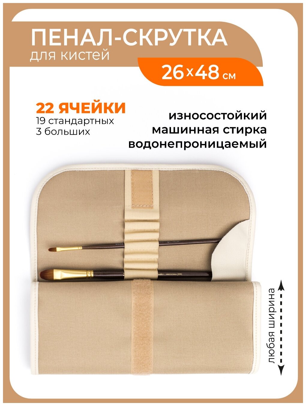 Малевичъ Скрутка для хранения кистей, 26х48 см, бежевая