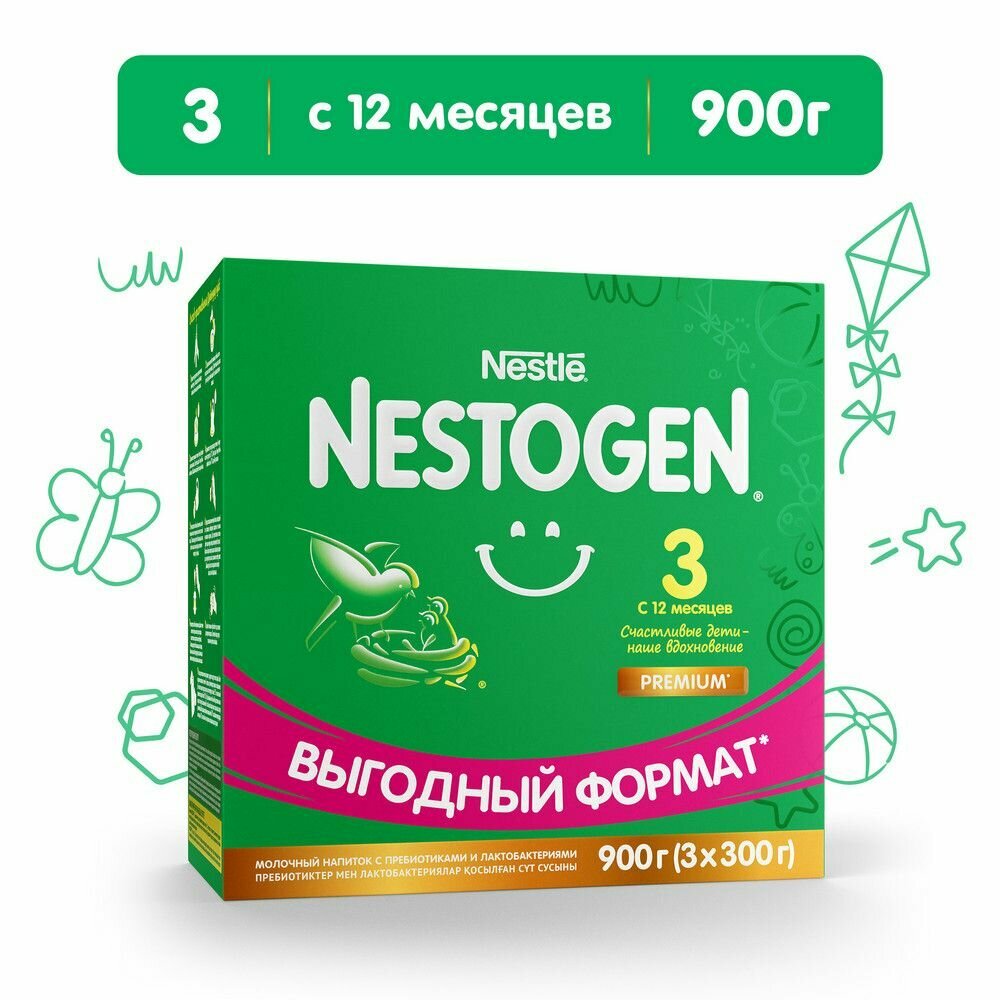 10 цен на Молочко детское Nestle Nestogen Premium 3, с 12 месяцев, для комфортного пищеварения, 900 г 2 упаковки