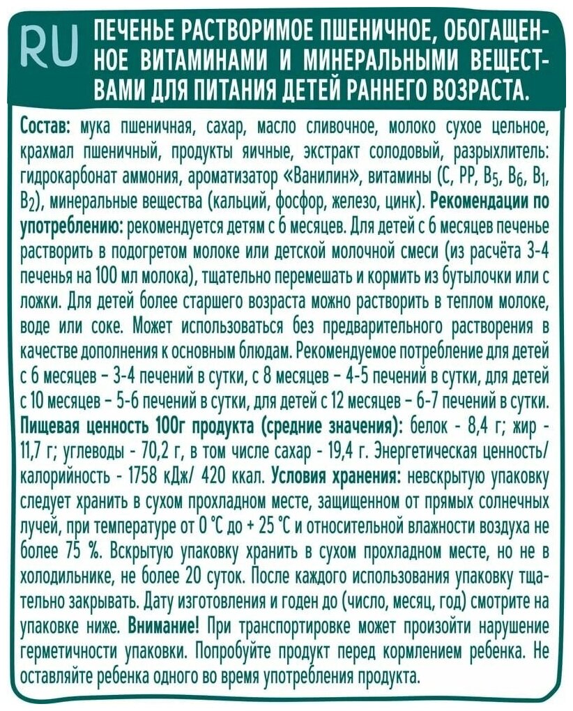 Печенье детское ФрутоНяня пшеничное с 6 месяцев 120 г 4 шт информация: