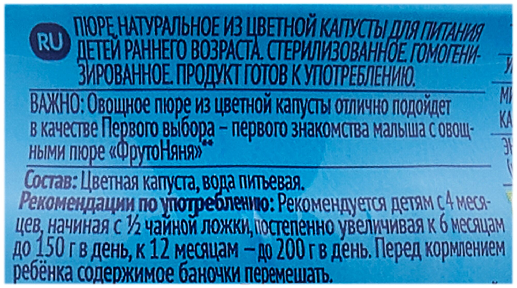 Пюре из цветной капусты ФрутоНяня 80г 6 шт информация: