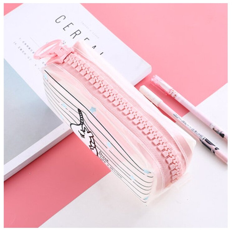10 цен на Пенал Единорог с большой молнией прозрачный белый