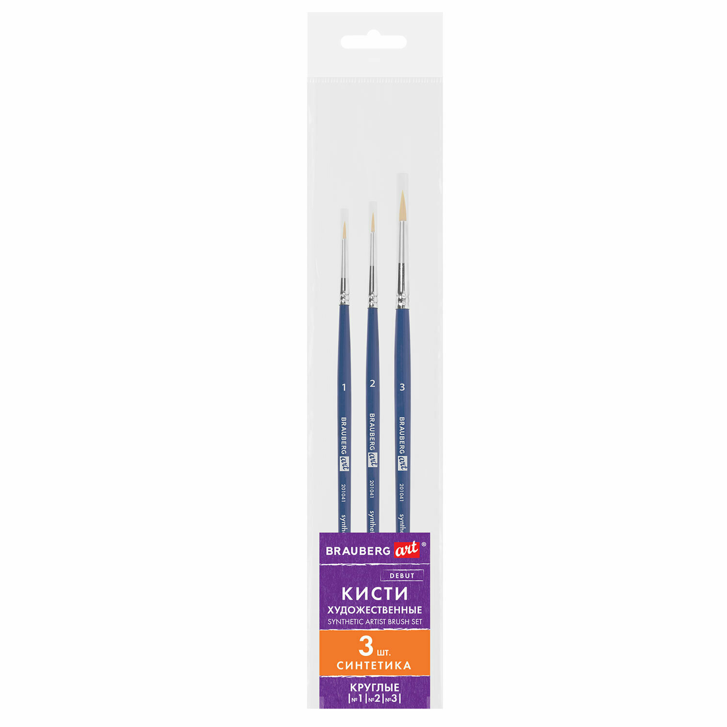Кисти для рисования художественные набор 3 штуки, синтетика круглые № 1 2 3, Brauberg Art Debut, 201041 информация:
