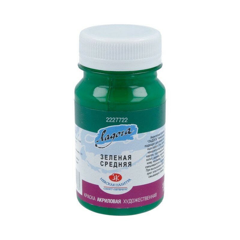 Краска акриловая "Ладога" 100 мл 2227722 зеленый средний информация: