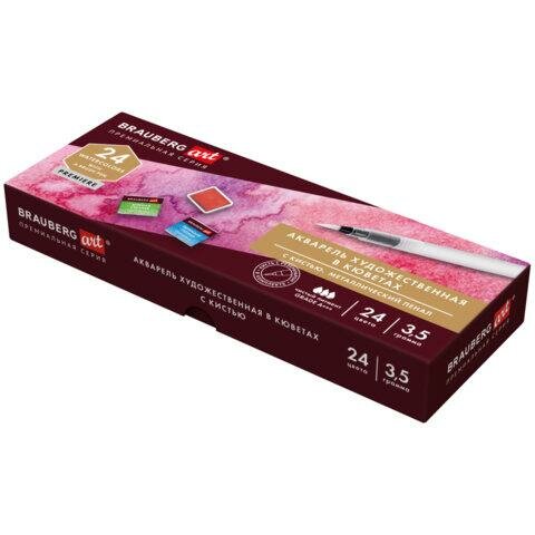 Акварель художественная кюветы набор 24 цвета по 3.5 г, металлический кейс, BRAUBERG ART PREMIERE