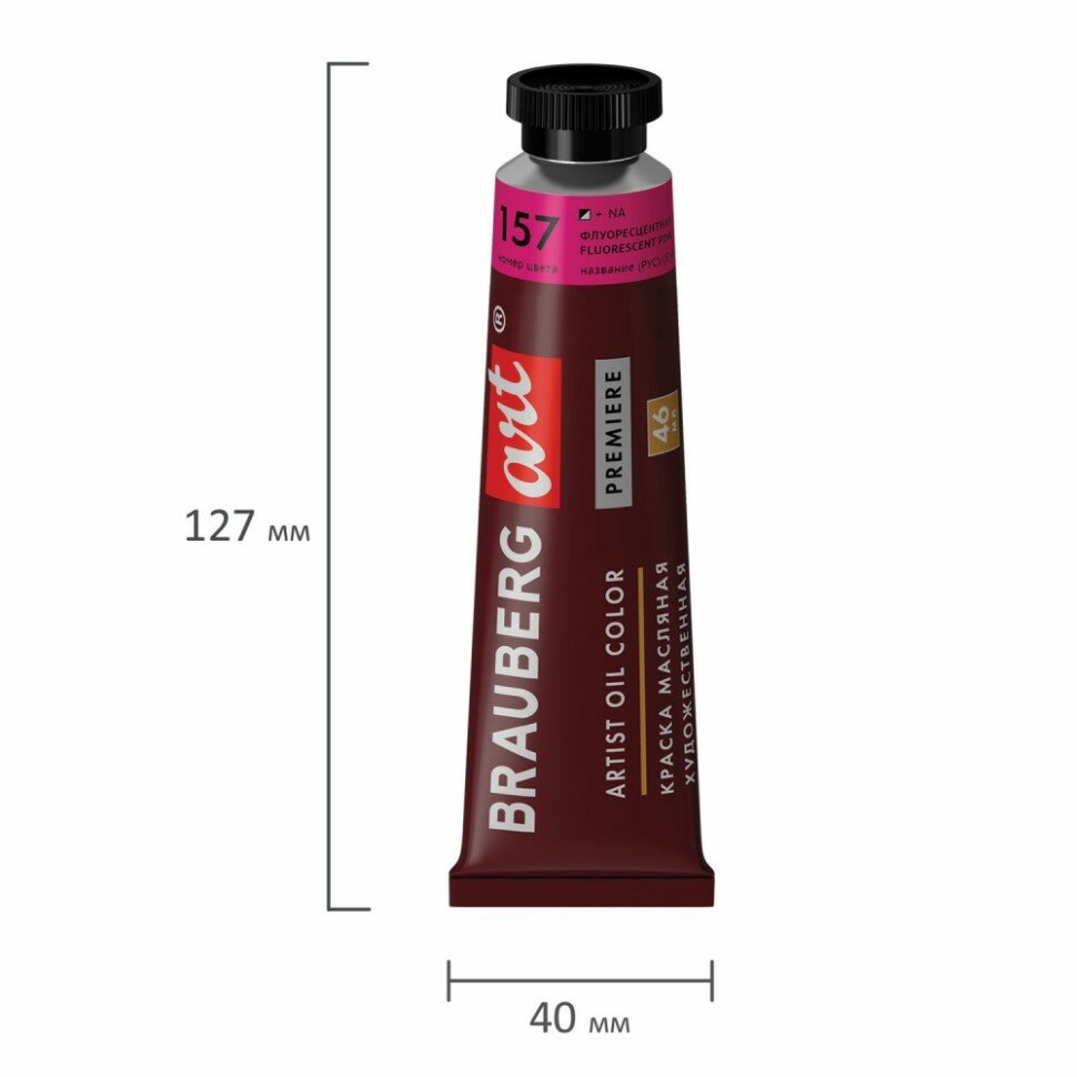 Краска масляная художественная Brauberg ART PREMIERE, 46 мл, профессиональная серия, флуоресцентная розовая информация:
