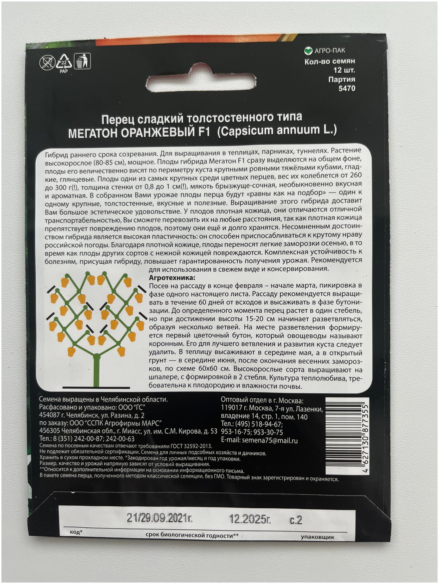 Семена Перец сладкий Мегатон Оранжевый F1 12шт информация: